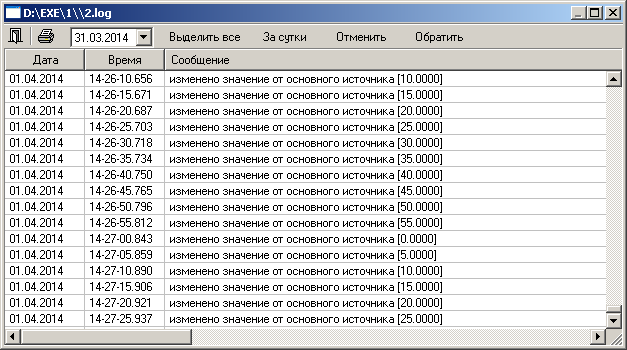 Программа позволяет вести журналы событий по произвольно выбранным параметрам (тегам). Журнал ведется индивидуально для каждого параметра и сохраняется в отдельном файле на диске. Записи журнала содержат дату и время события, а также текстовое сообщение. В журнале могут фиксироваться события, попадающие в одну или несколько категорий из следующего списка: