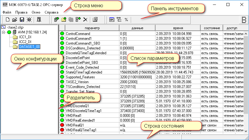При настройке программы создаётся список серверов протокола ICCP. Для каждого сервера при помощи сервисов протокола ICCP автоматически загружается его структура. Выборочно параметры устройства при настройке заносятся в произвольном порядке в созданные группы тегов. Эти теги будут доступны клиентским приложениям.