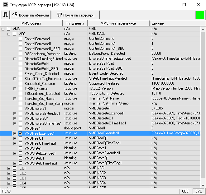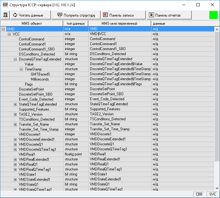 - загрузку структуры устройства непосредственно с сервера с использованием сервисов протокола ICCP